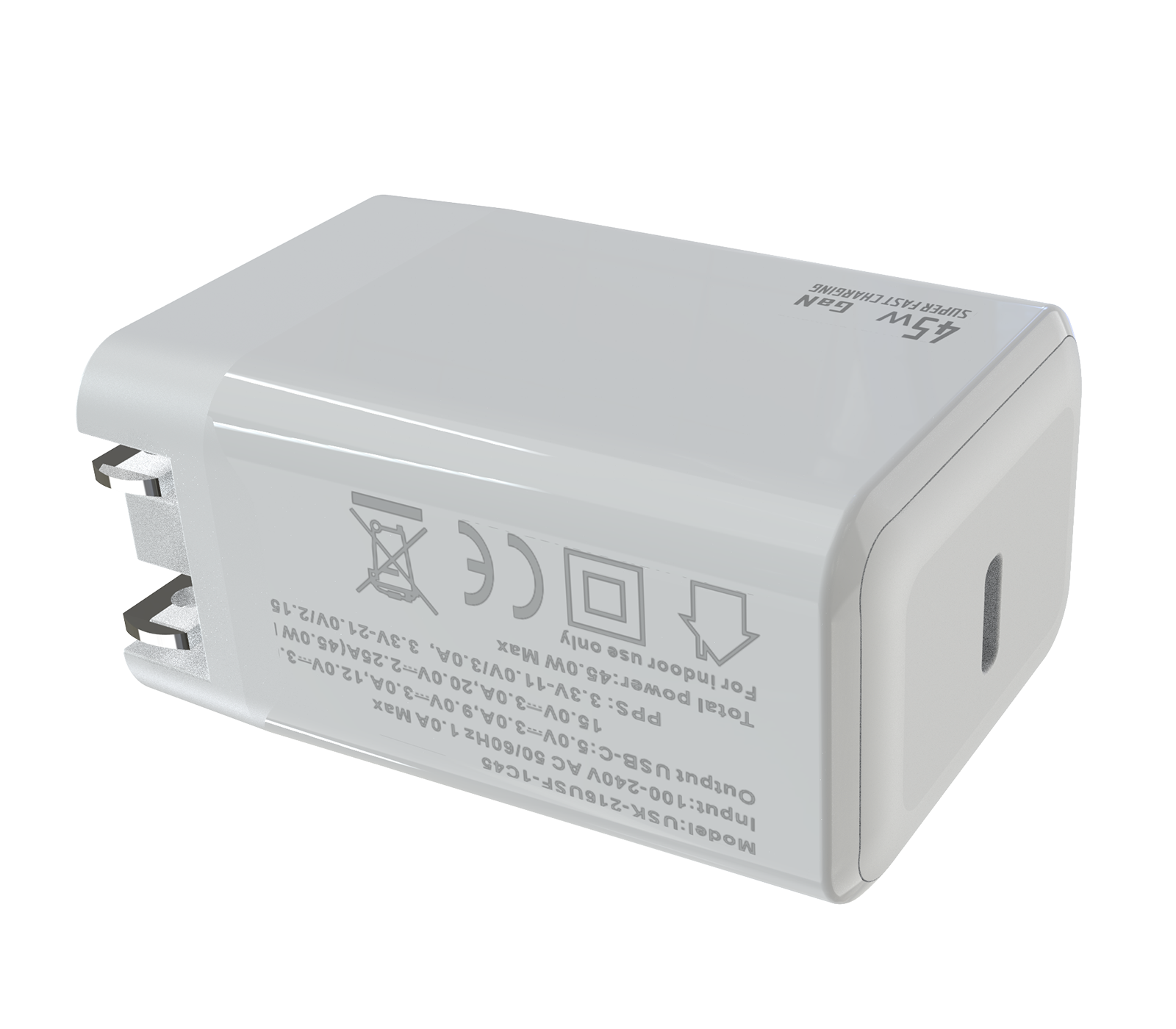 - Output:USB-CF:5V/3A,9V/3A,12V/3A,15V/3A,20V/2.25A, (max.45W)