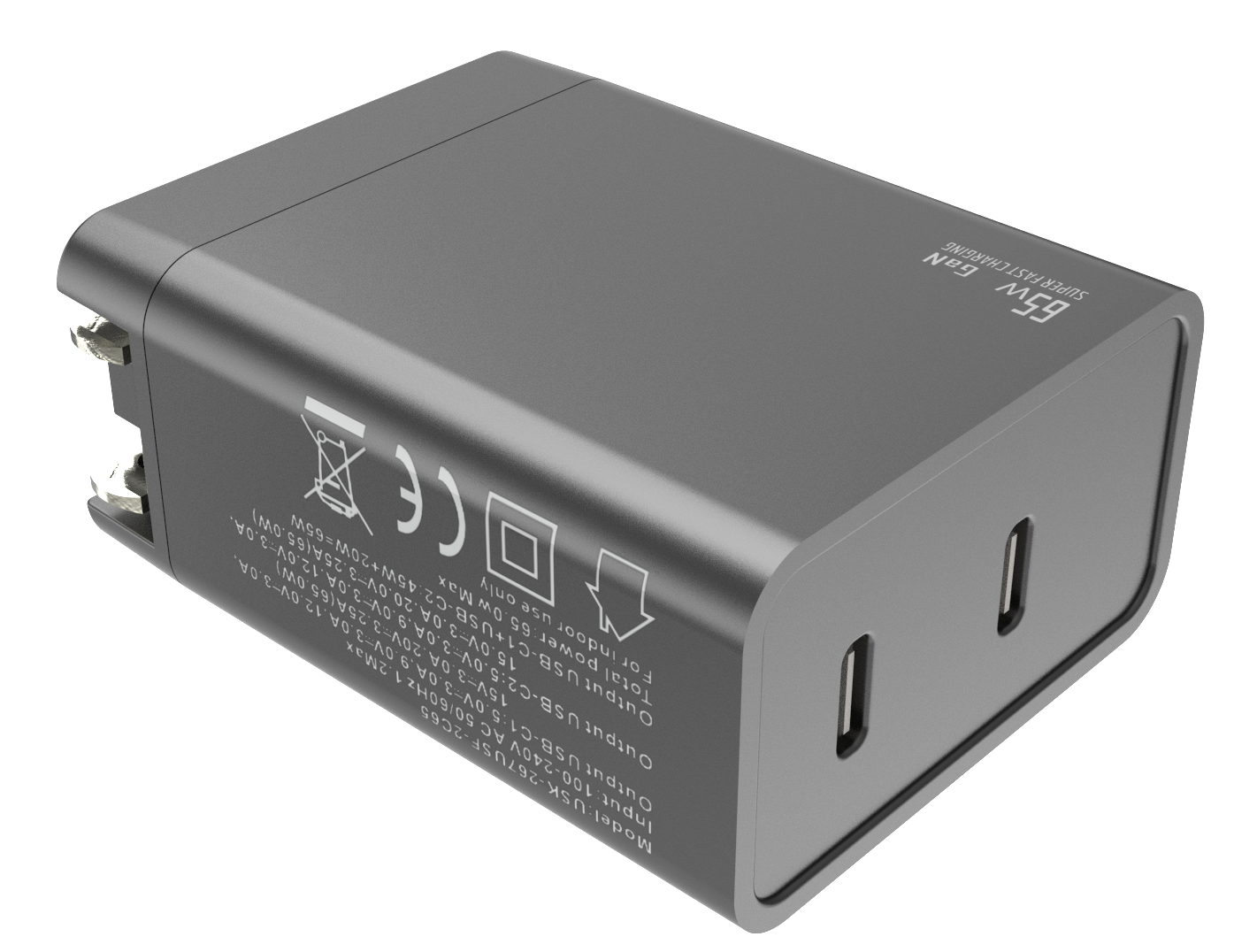 - Output:USB-CF1+USB-CF2:20W+45W=65W (max.65W)
