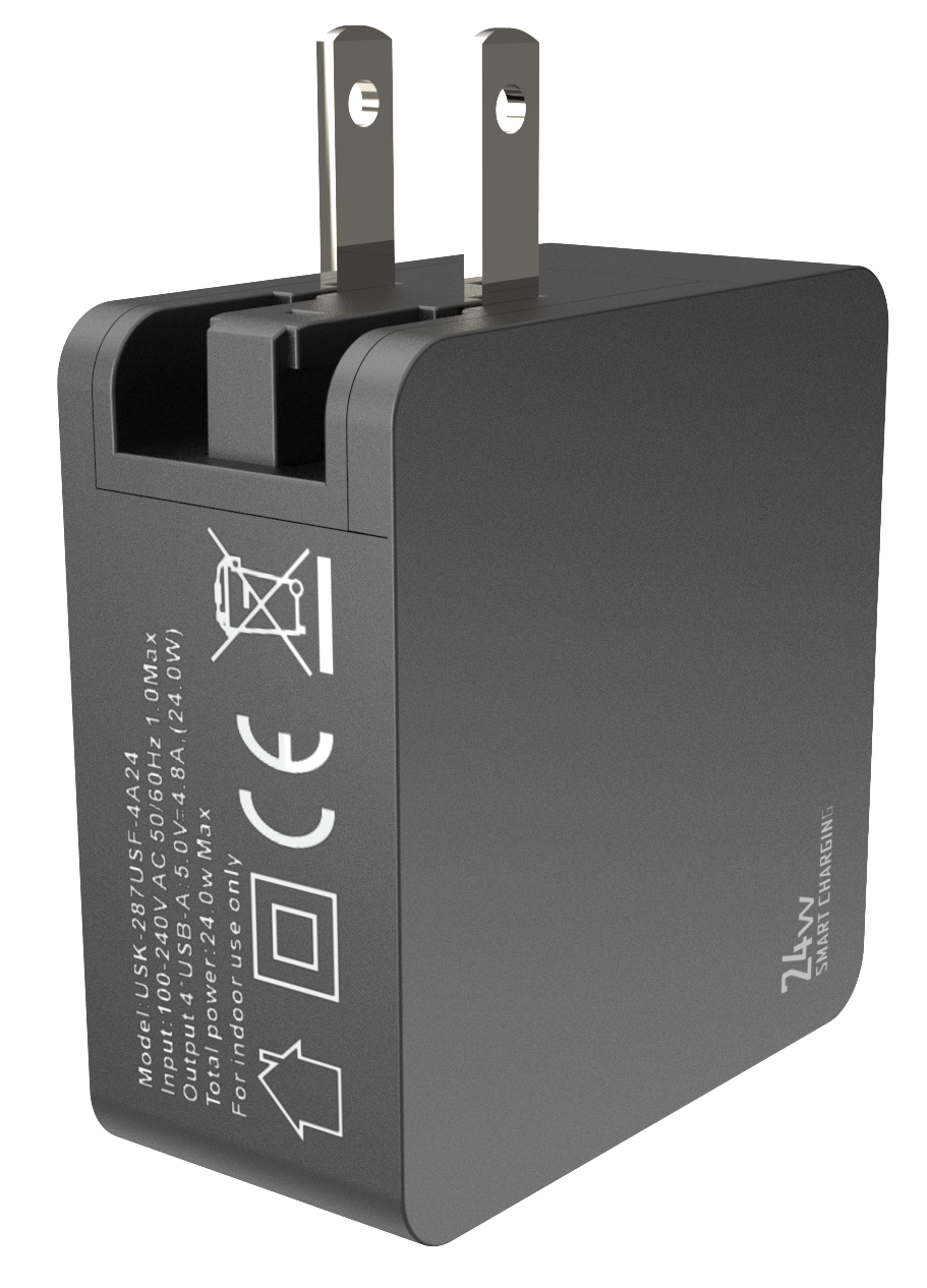 - Input:100-240V AC 50/60Hz 1.0A - Output:4*USB-AF:5V/4.8A(Each port max 2.0A)