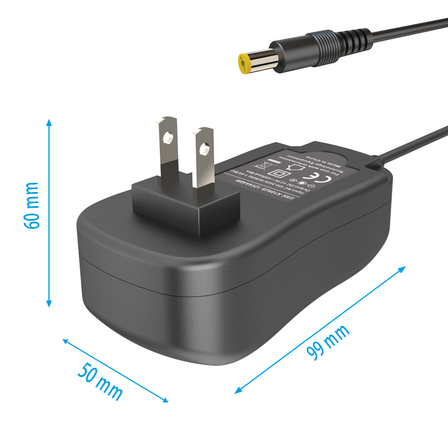 - Input:100-240V AC 50/60Hz 1.0A - Output:12.0V/4A (48W) - Total Power:48W Max - Efficiency:VI - Safety Protection: Overcharge Protection, Overdischarge Protection, Over Load Protection, Short Circuit Protection - DC Cable:2C*20#*1.5 m - Operating Temperature:0℃ to 40℃ - Operating Humidity:25% to 90% - Storage Temperature:-40℃ to 85℃ - Dimensions U107EU:99*50*77 mm - Dimensions U107US:99*50*60 mm
