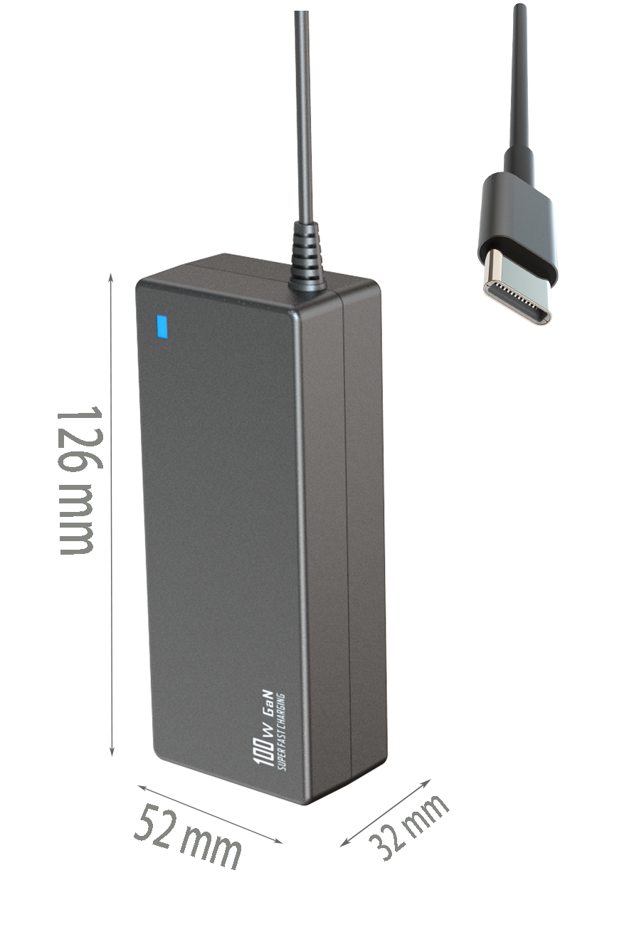 - Input:100-240V AC 50/60Hz 1.8A - Output:5V/3A,9V/3A,12V/3A,15V/3A,20V/5A (100W). - Total Power:100W Max - Efficiency:VI - Safety Protection: Overcharge Protection, Overdischarge Protection, Over Load Protection, Short Circuit Protection - DC Connector: TYPE-C. - DC Cable:2C*20#, L=1.5M ,OD3.5. - AC Power Cord:2C*0.5mm*1.5 m - Operating Temperature:0℃ to 40℃ - Operating Humidity:25% to 90% - Storage Temperature:-40℃ to 85℃ - Dimensions (mm):126*52*32 mm