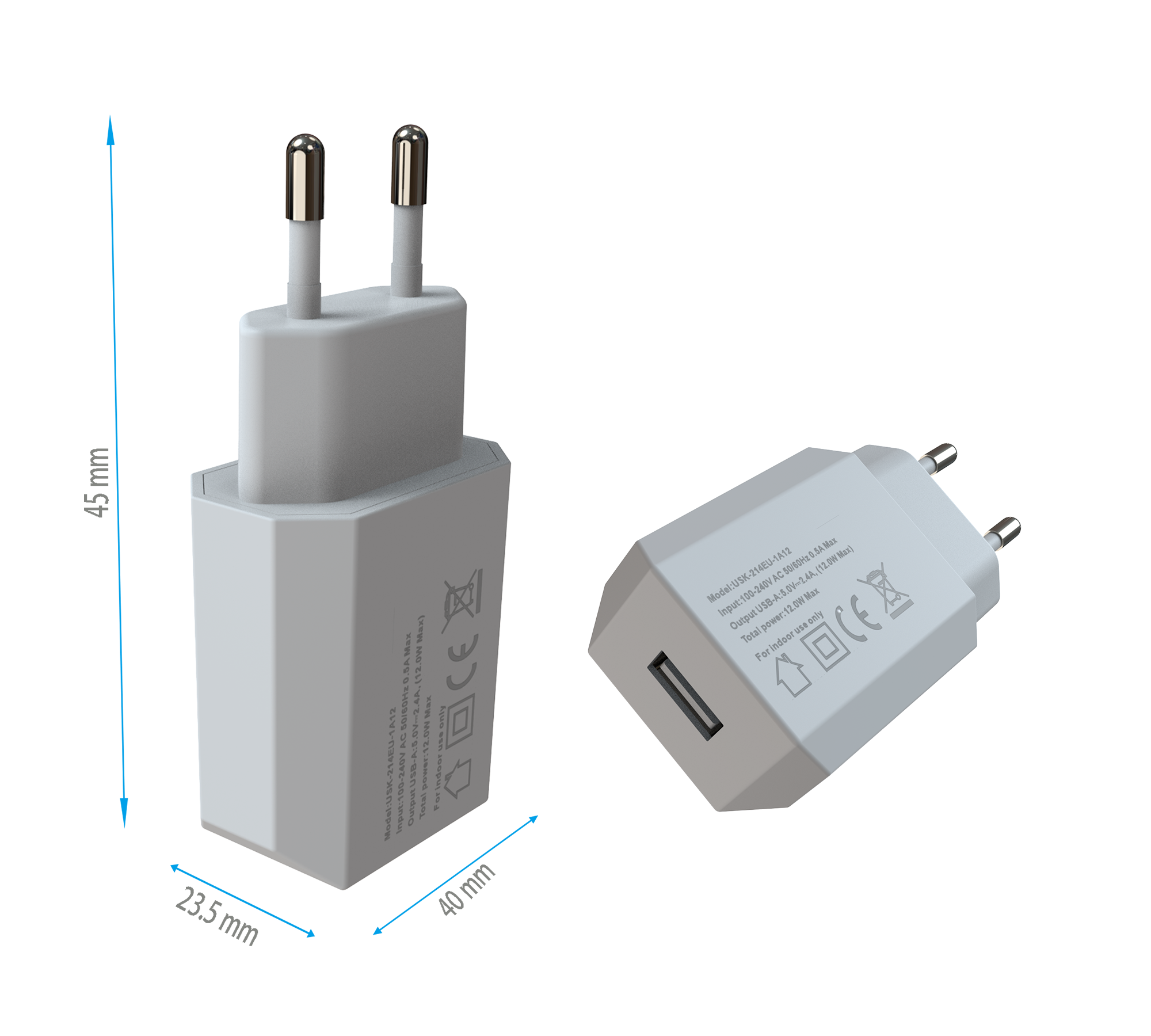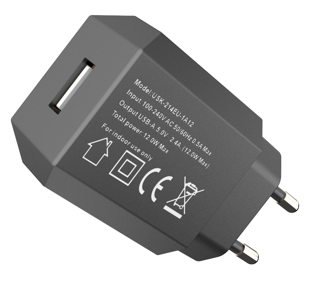 - Input:100-240V AC 50/60Hz 0.5A - Output:USB-AF:5V/2.4A (max.12W)