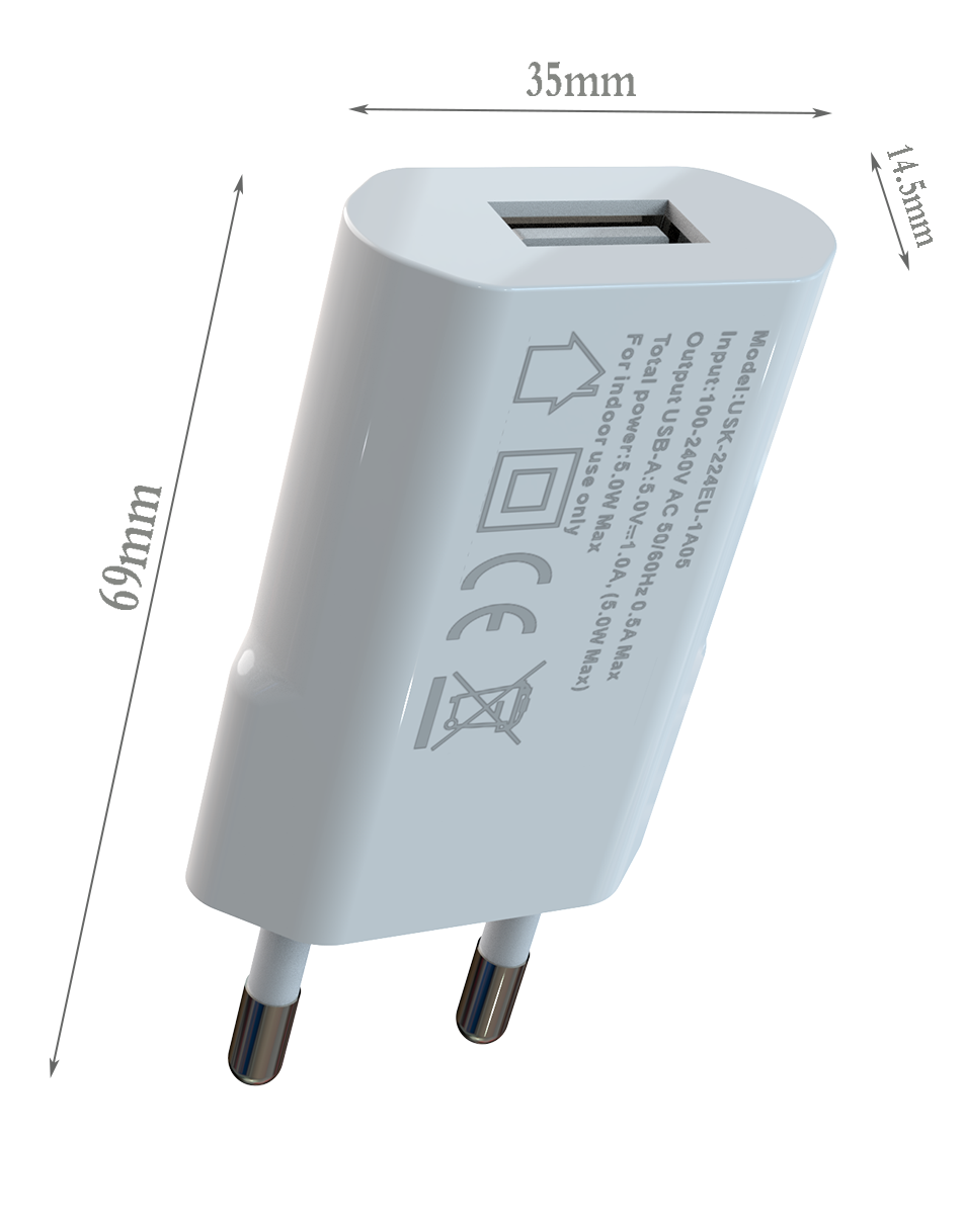 - Input:100-240V AC 50/60Hz 0.5A - Output:USB-AF:5V/1.0A (max.5W)