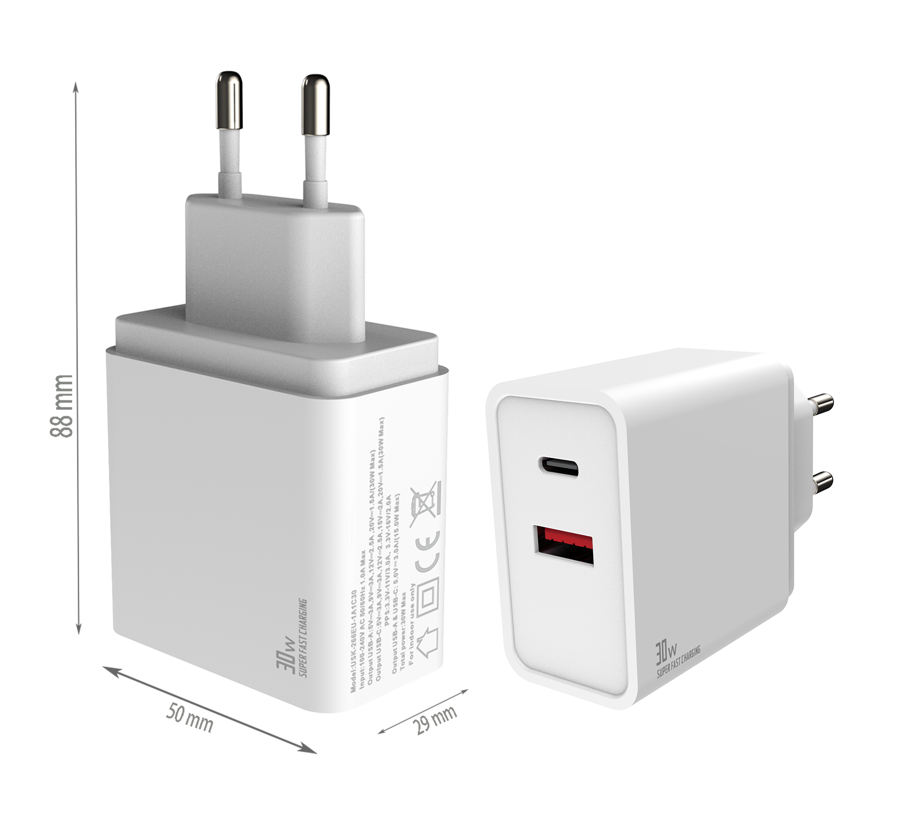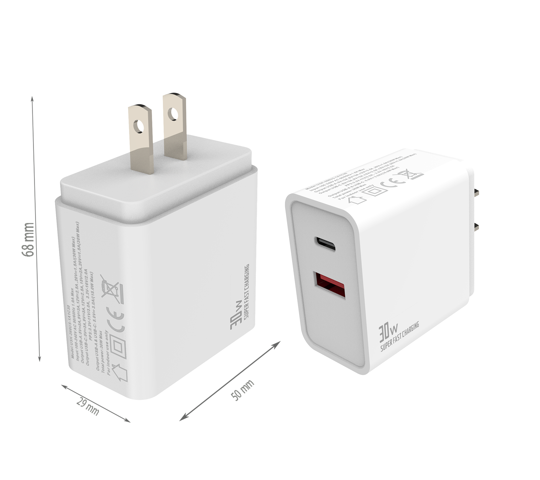 - Output:USB-CF:5V/3A,9V/3A,12V/2.5A, 15V/2A,20V/1.5A(max.30W)