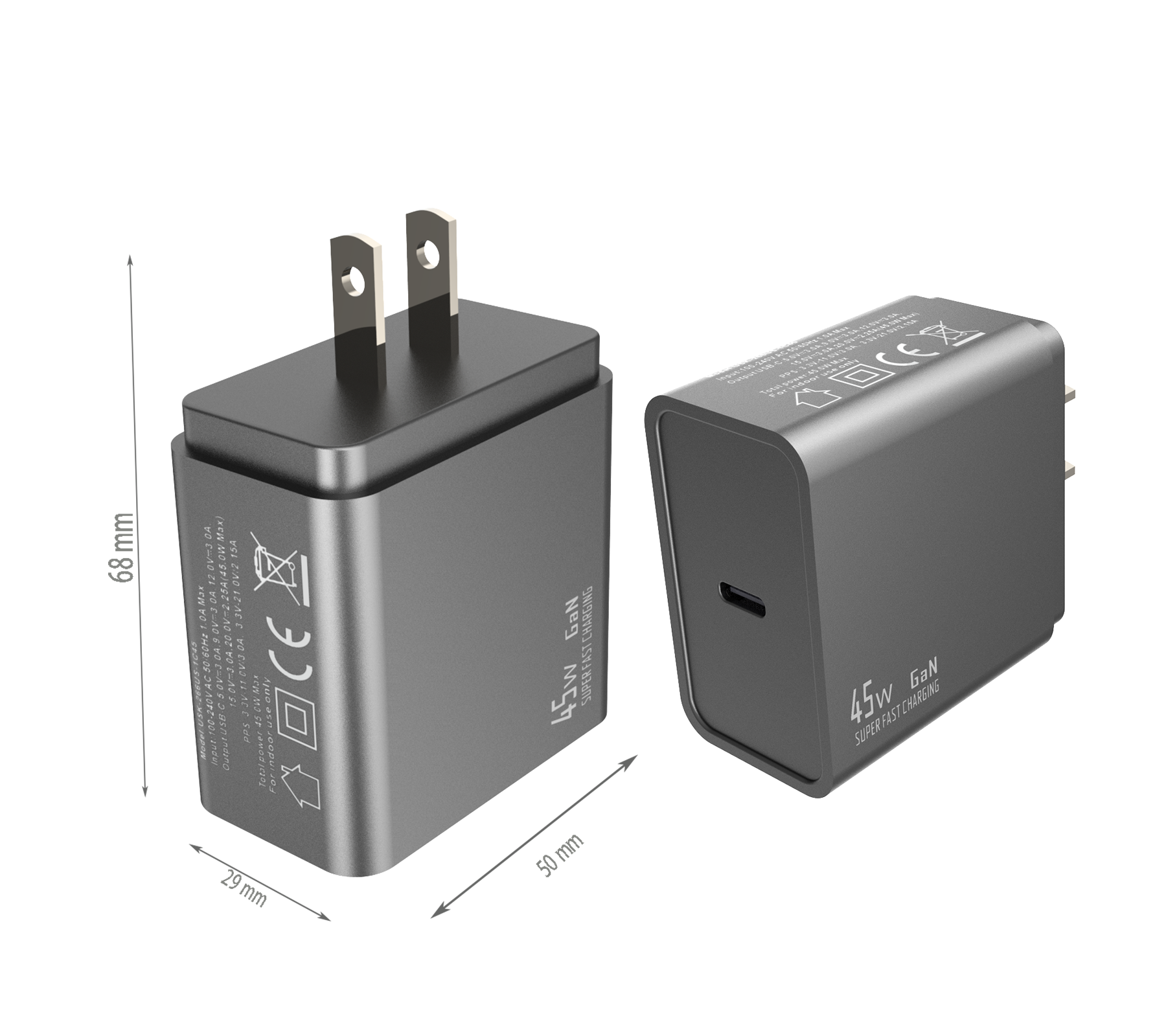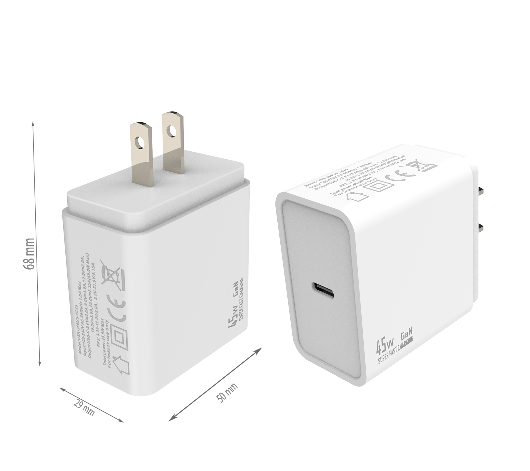 - US PLUG Dimensions:68x50x29 mm