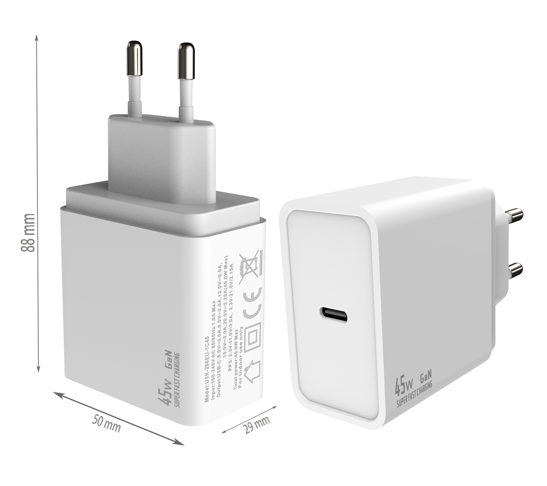- EU PLUG Dimensions:88x50x29 mm