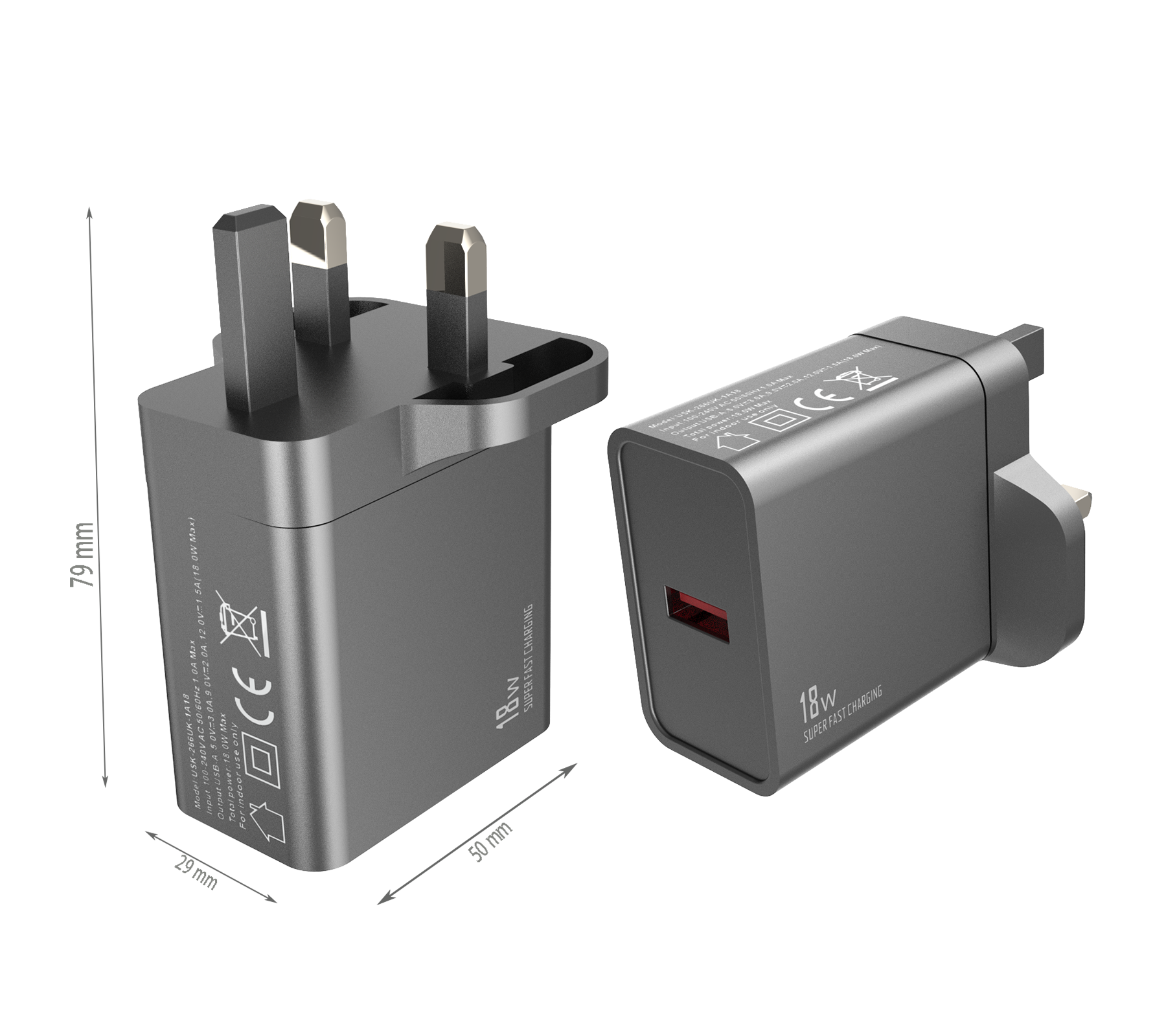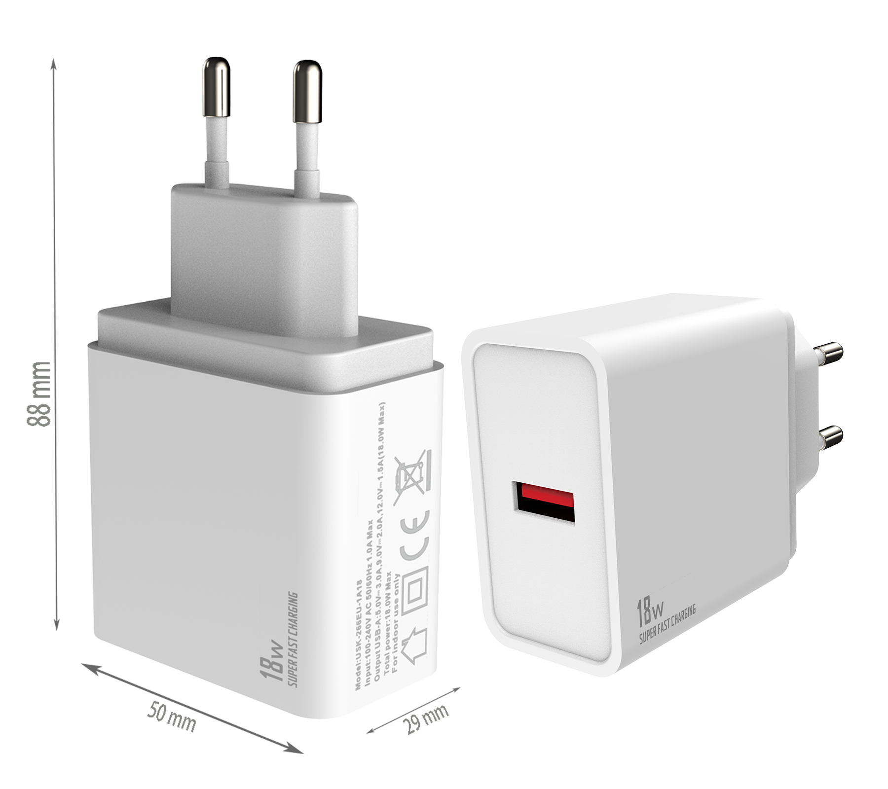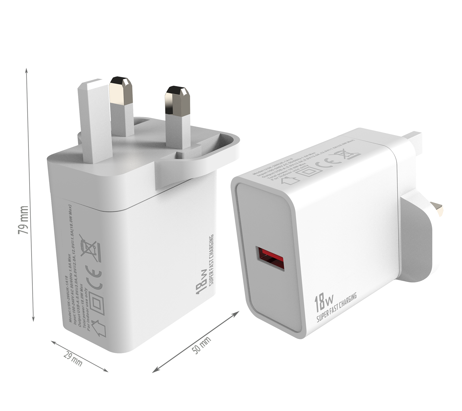 - EU PLUG Dimensions:88x50x29 mm - UK PLUG Dimensions:79x50x29 mm - US PLUG Dimensions:68x50x29 mm