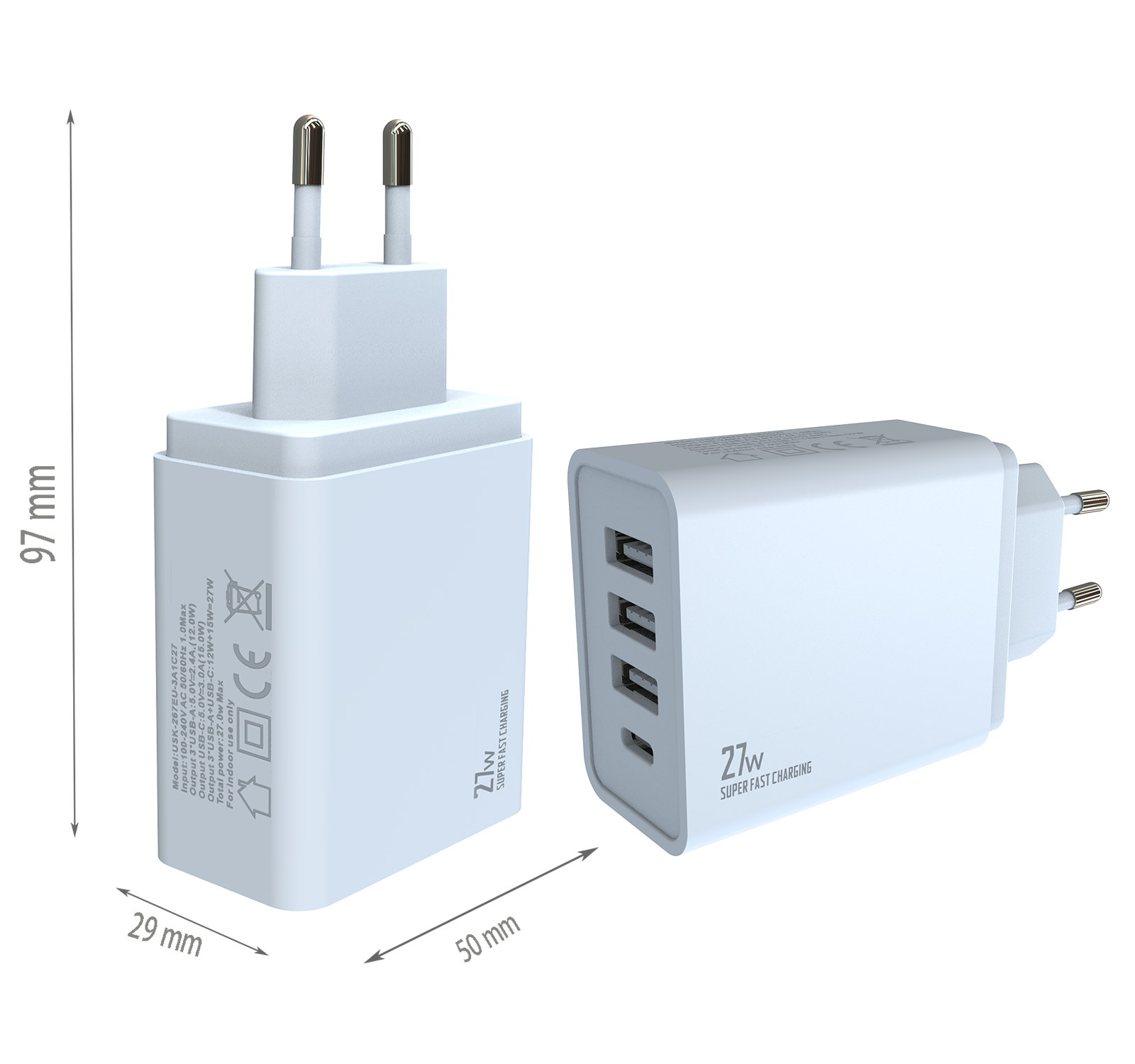 - EU PLUG Dimensions:97x50x29 mm