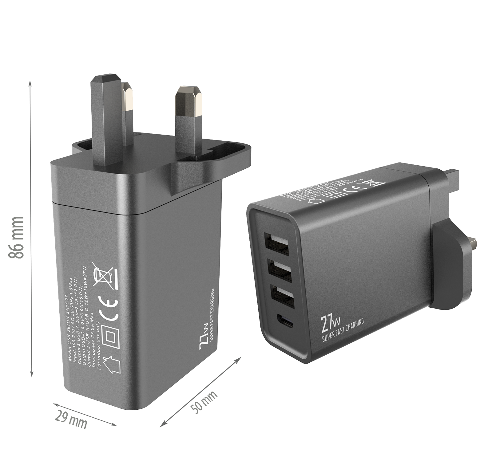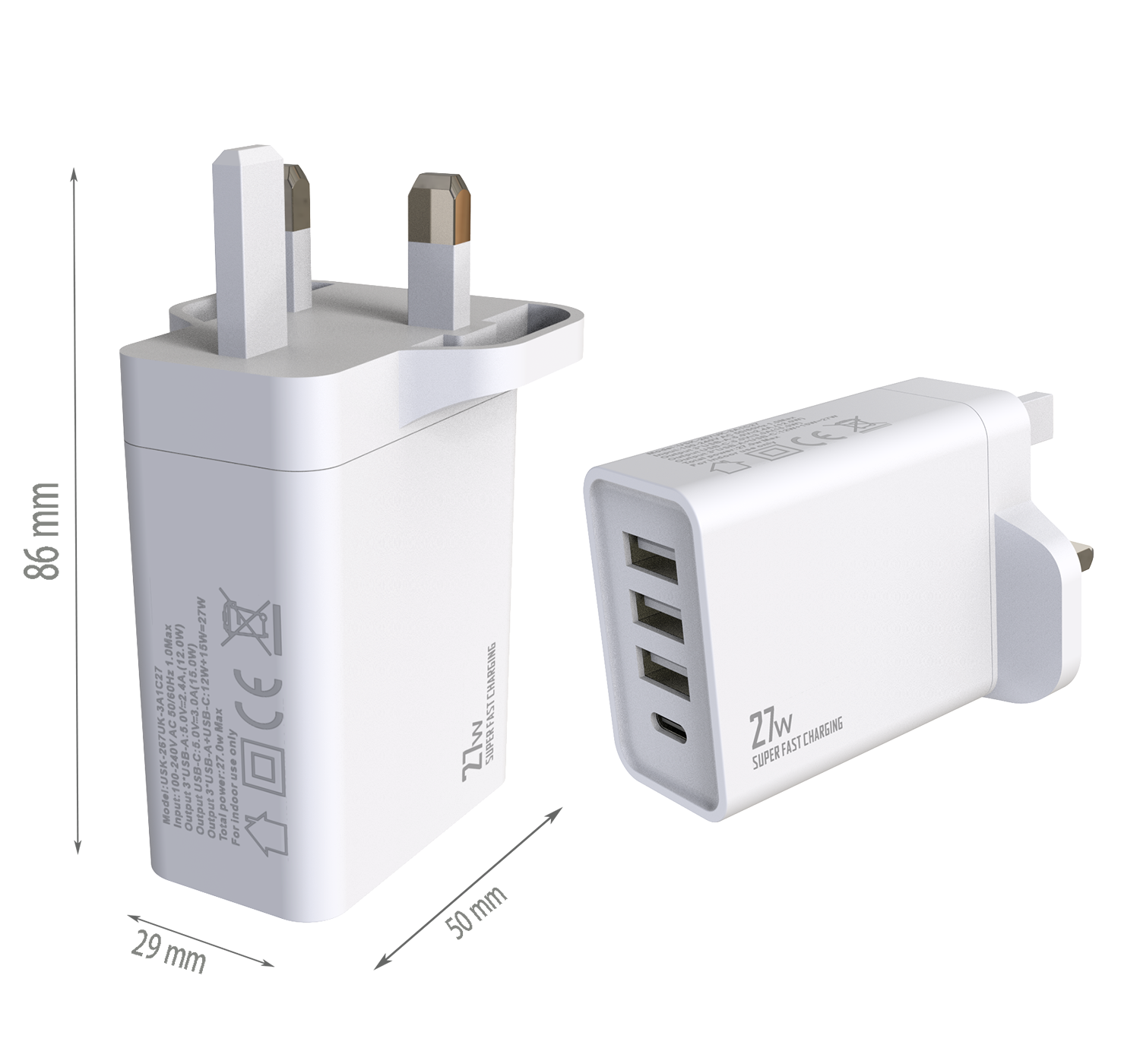 - UK PLUG Dimensions:86x50x29 mm