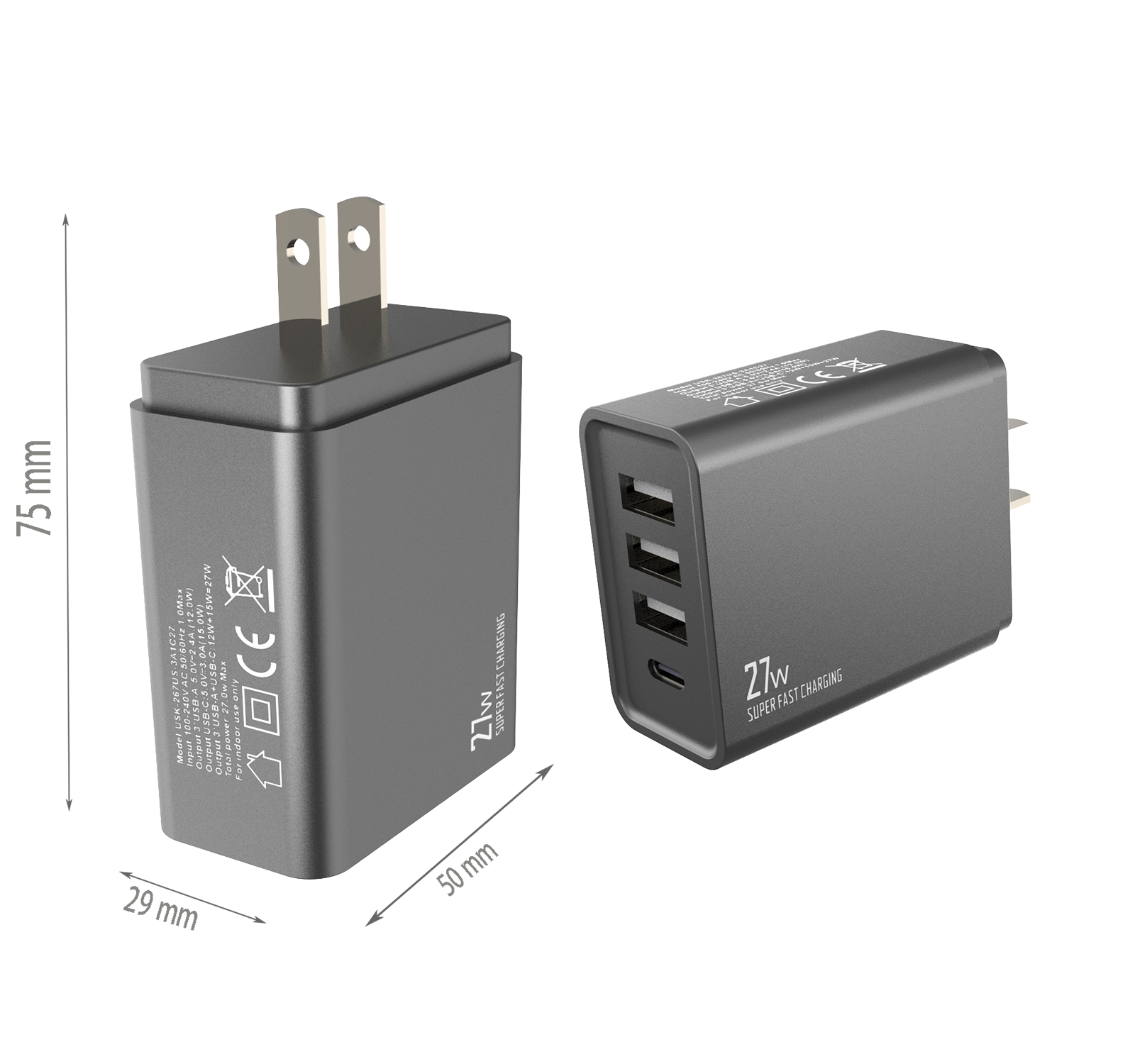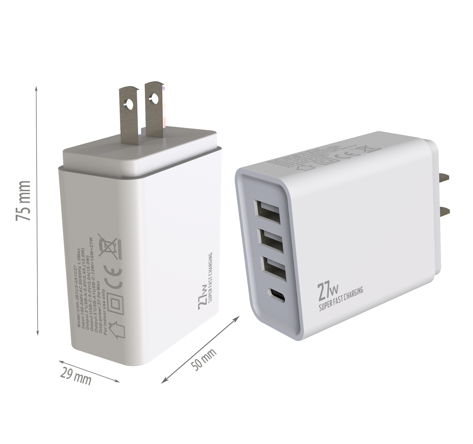 - US PLUG Dimensions:75x50x29 mm