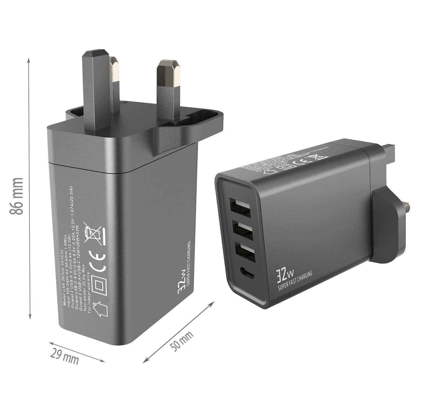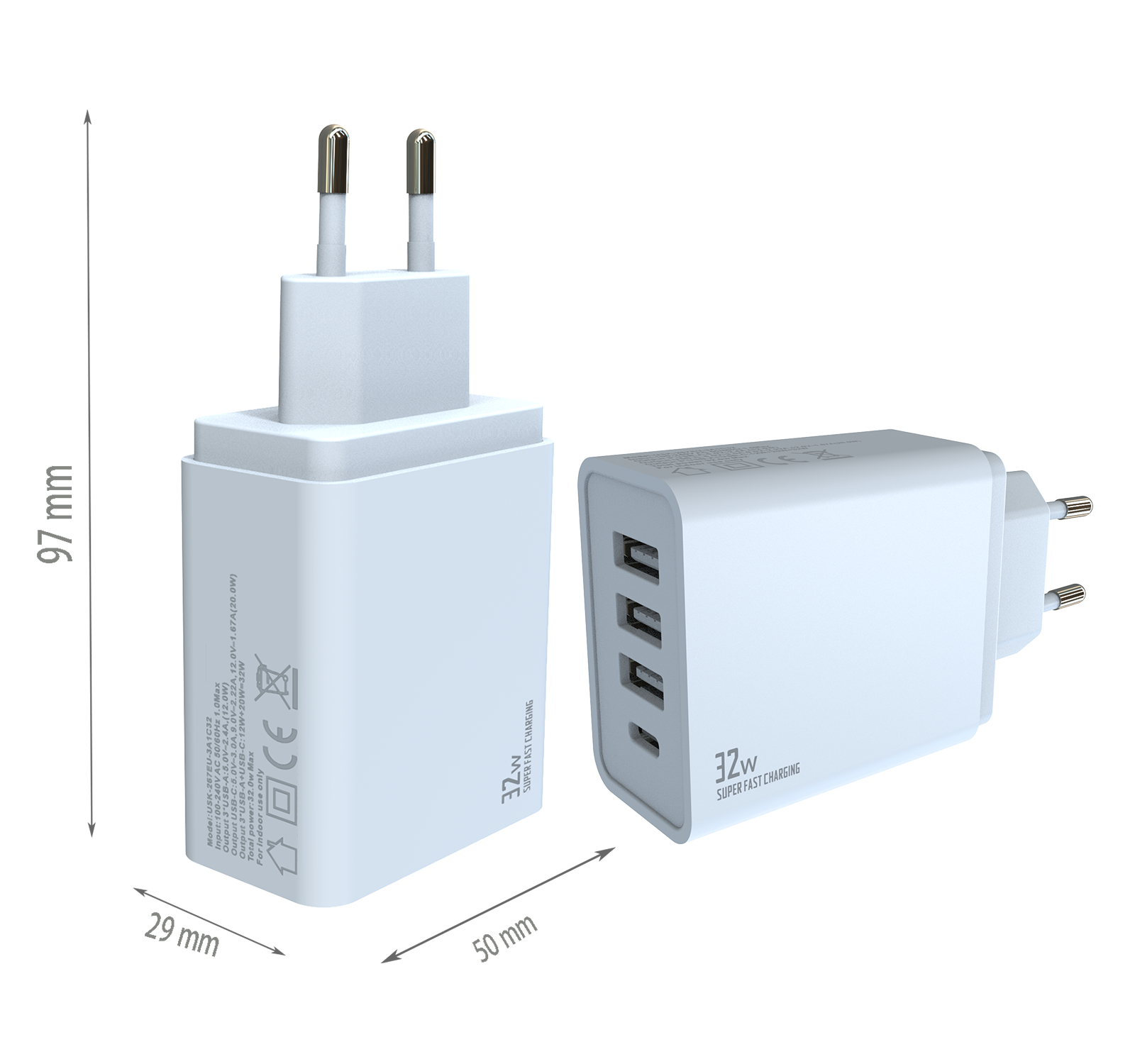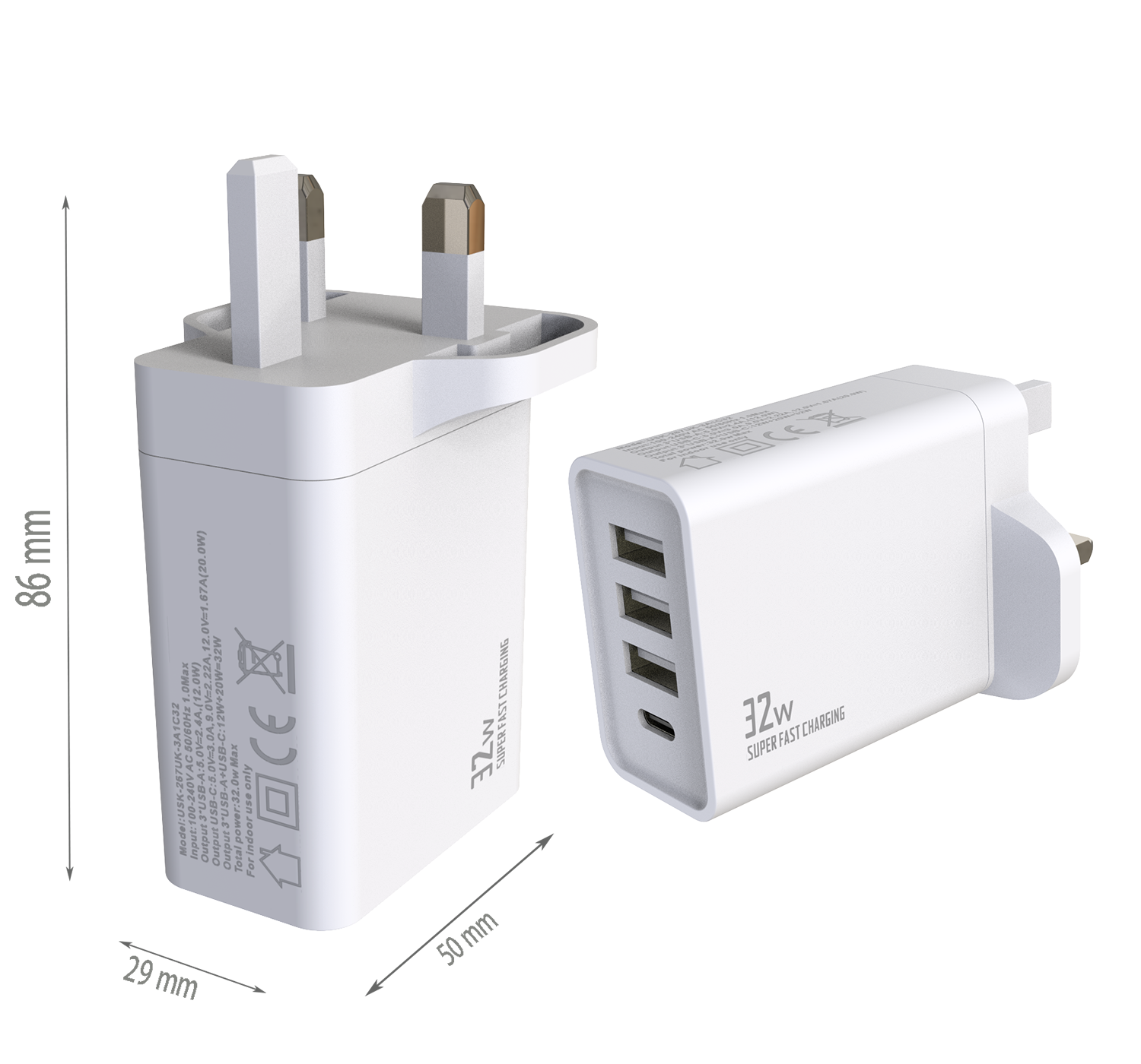- Output:3*USB-AF:5V/2.4A(Each port max 2.0A)