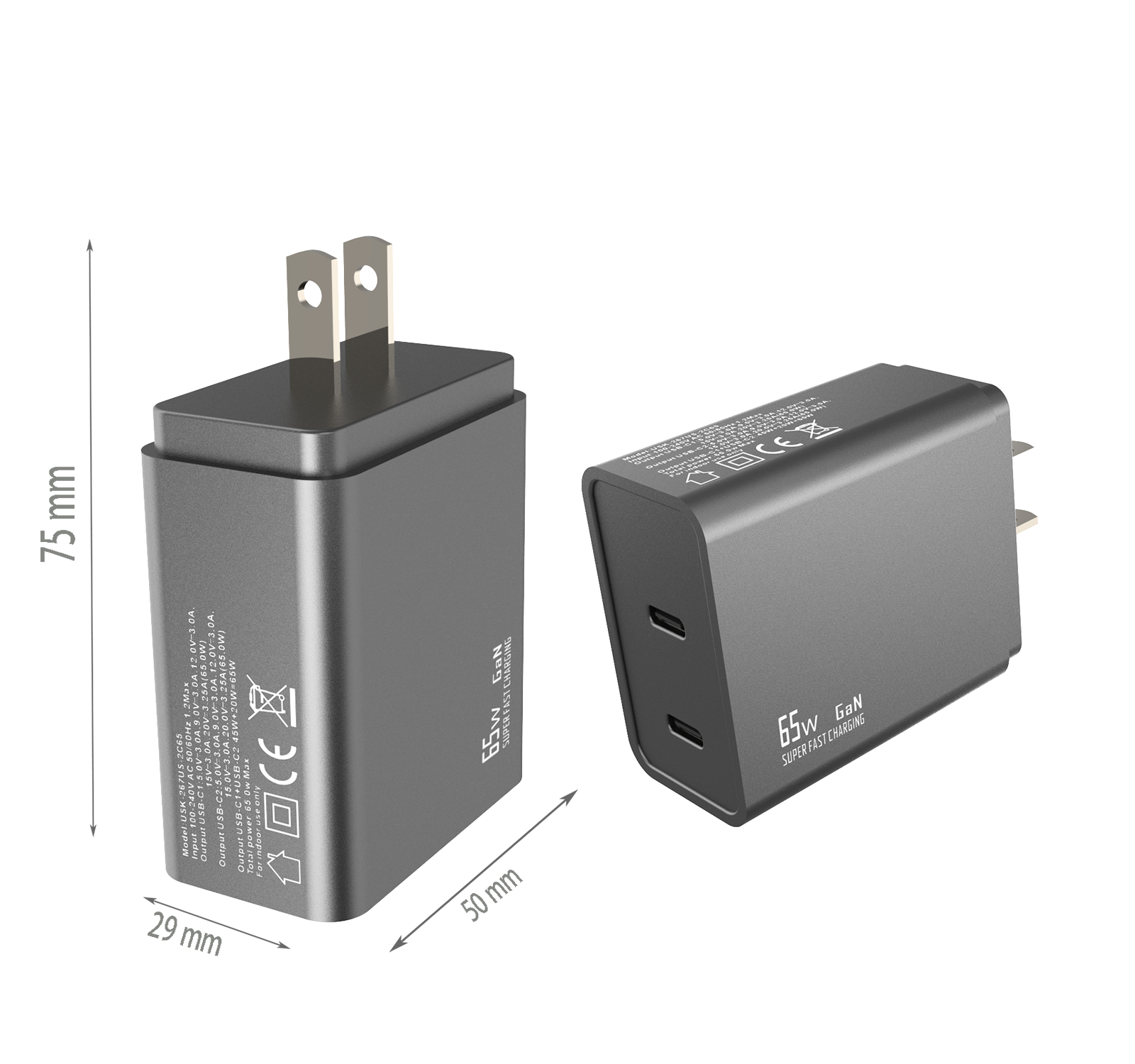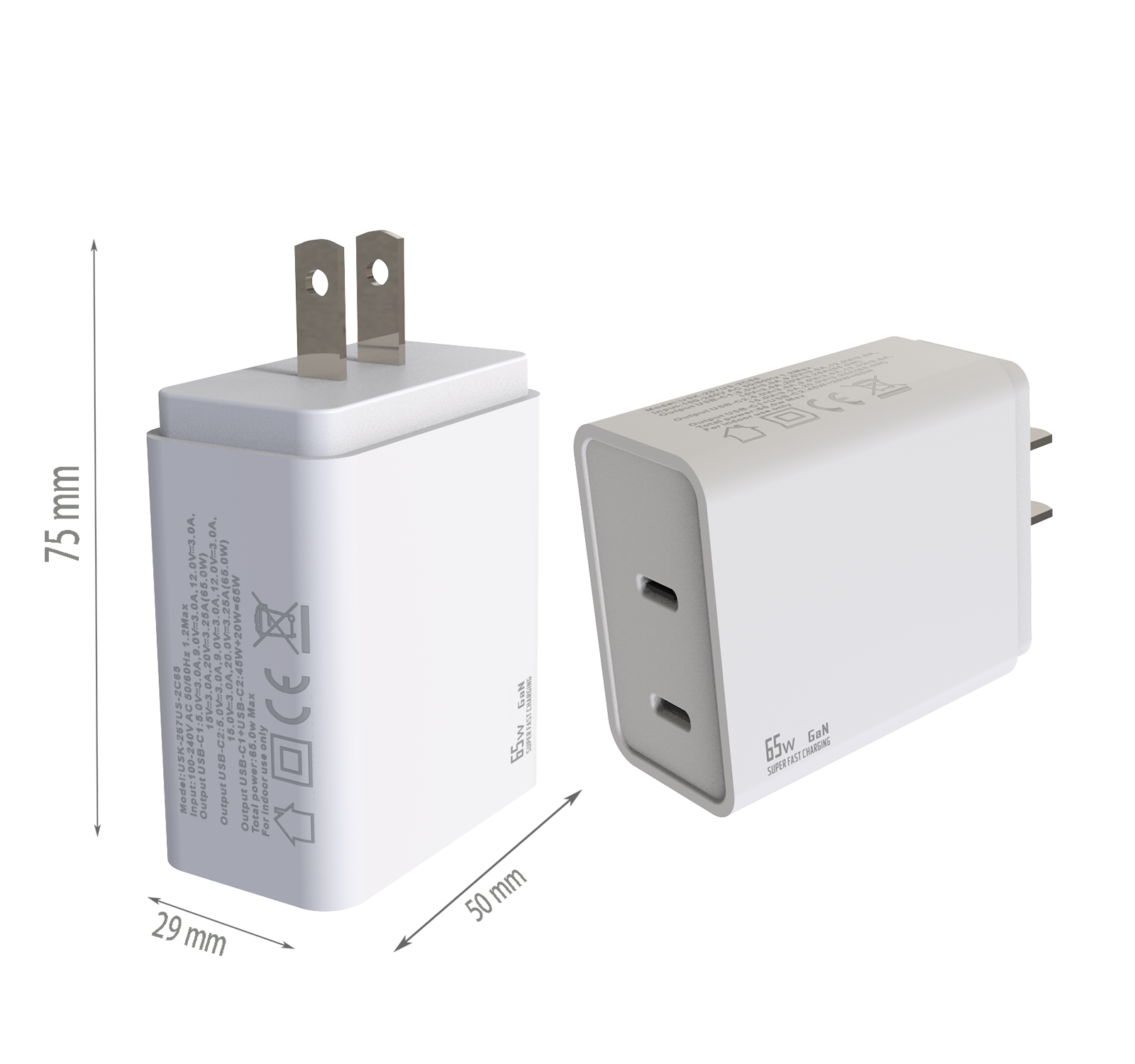 - US PLUG Dimensions:75x50x29 mm