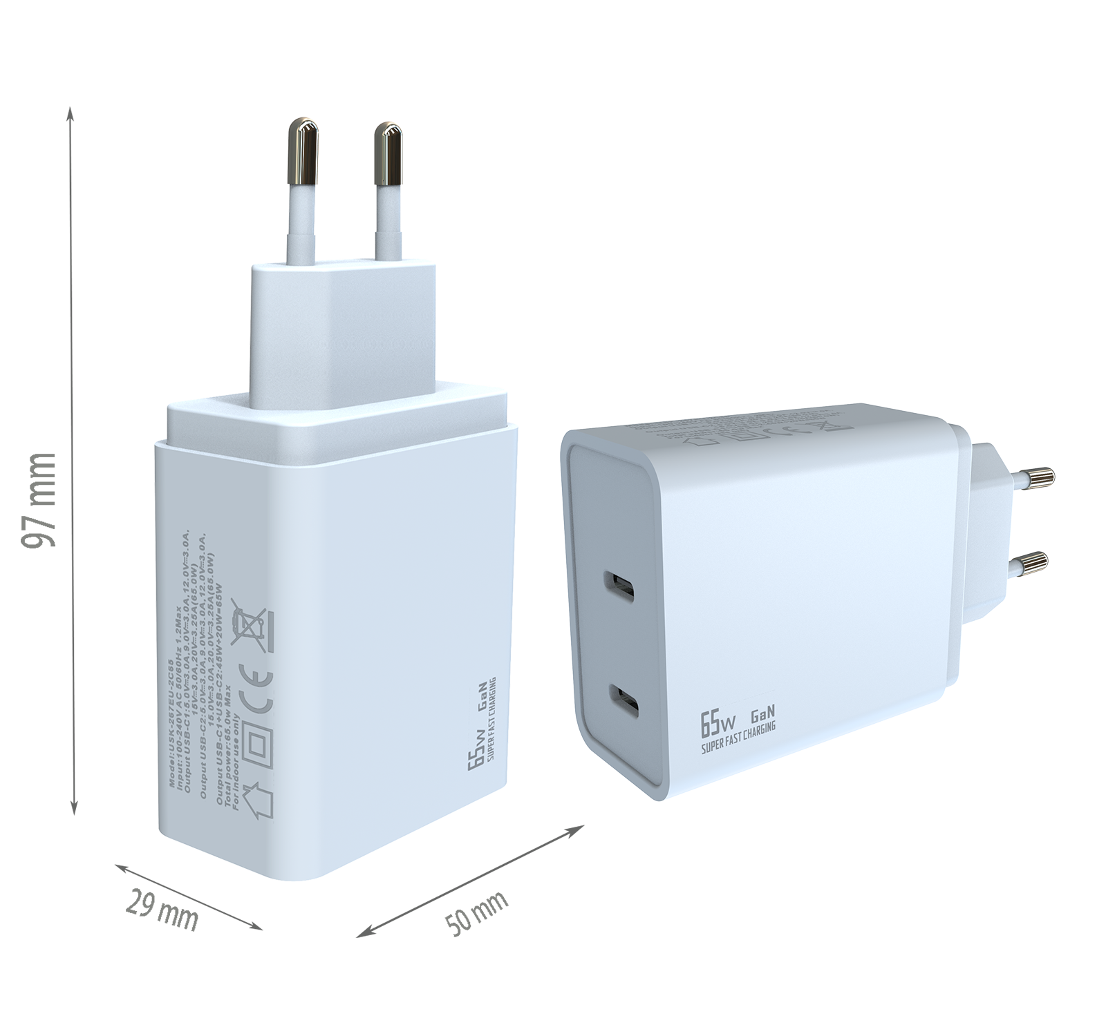 - EU PLUG Dimensions:97x50x29 mm