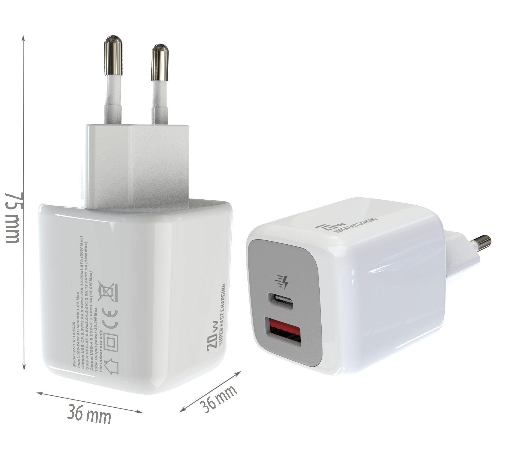 - Output:USB-CF:5V/3A,9V/2.22A,12V/1.67A, (max.20W)