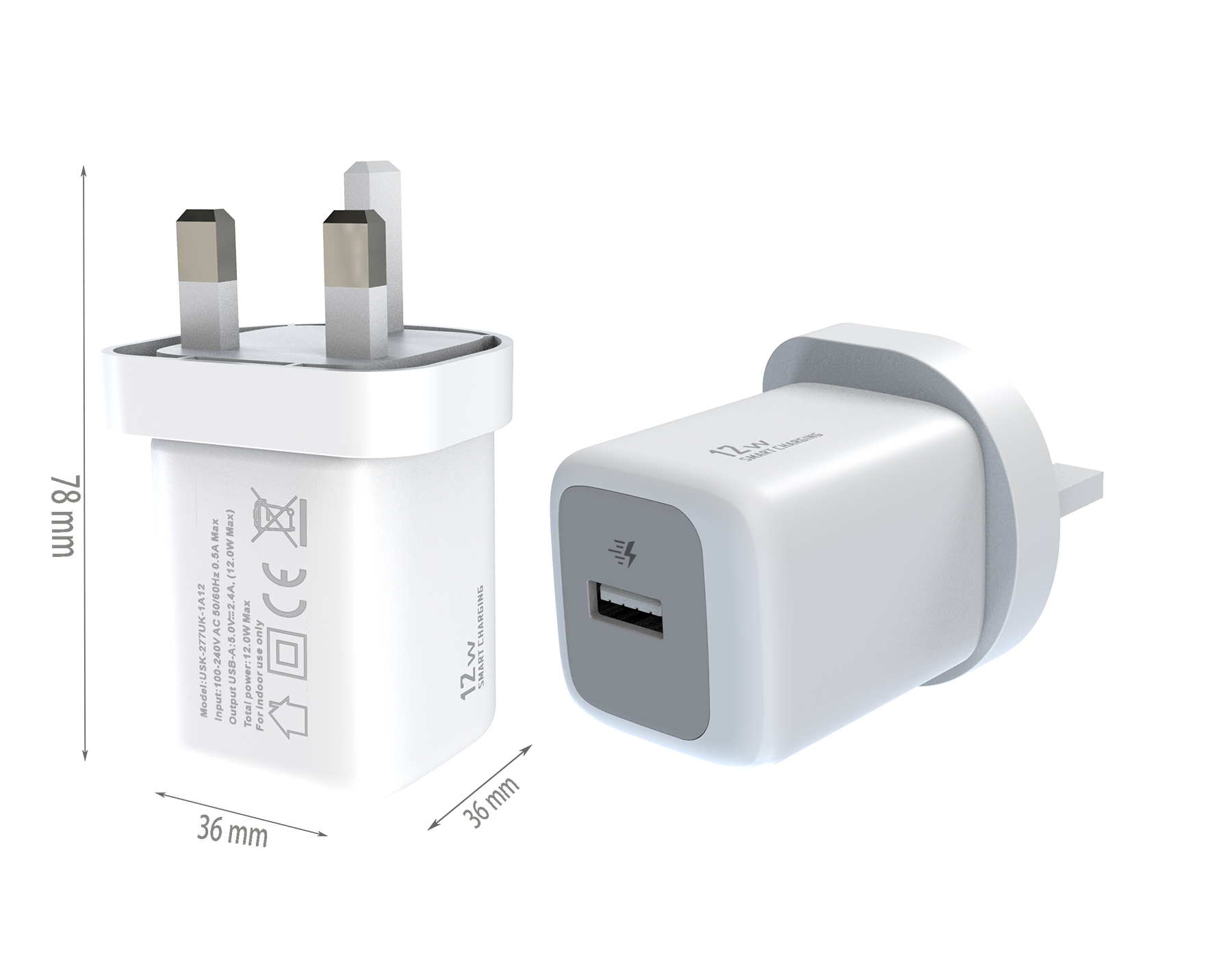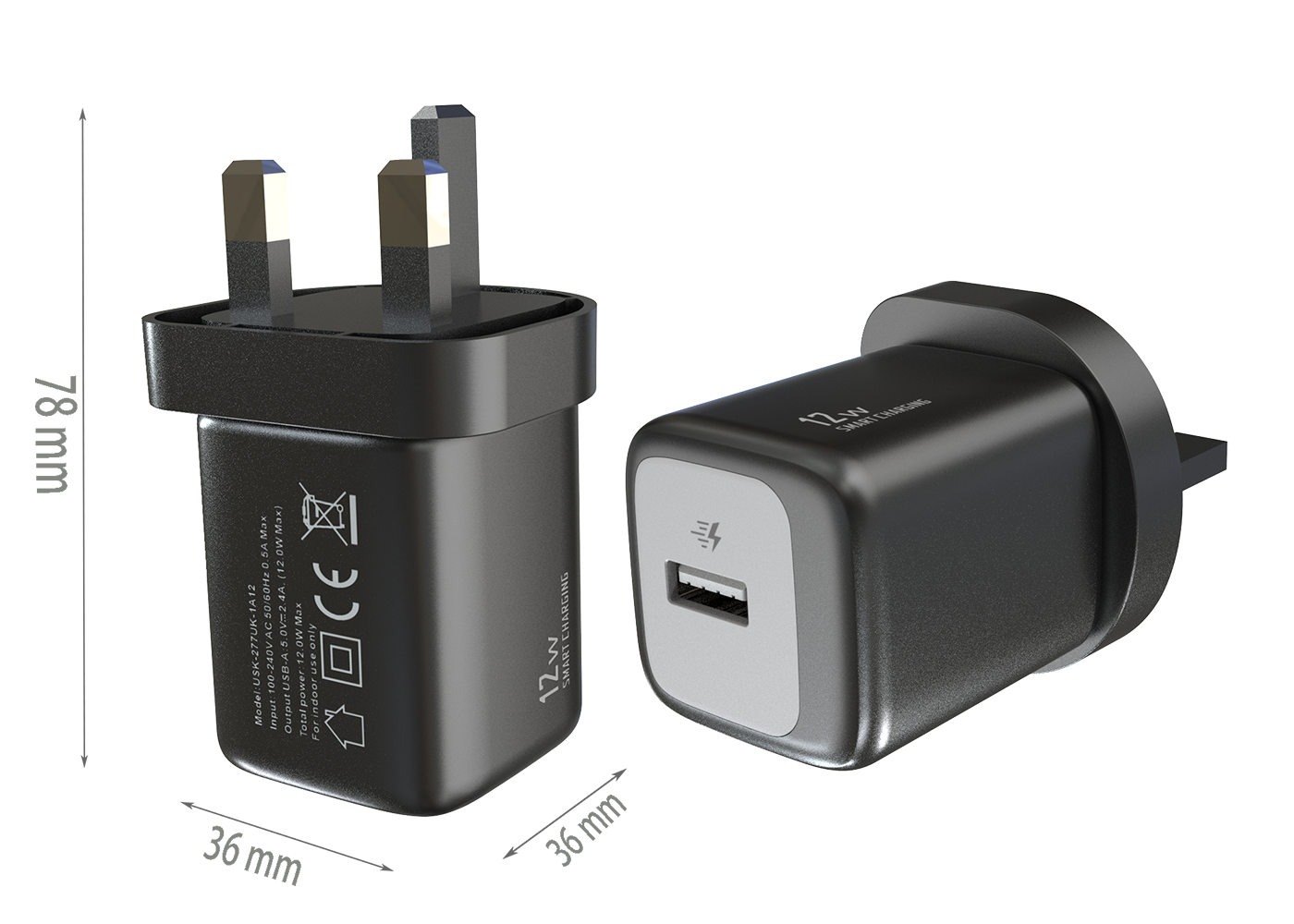 - Storage Temperature:-40℃ to 85℃ - EU PLUG Dimensions:82x36x36 mm - UK PLUG Dimensions:78x36x36 mm