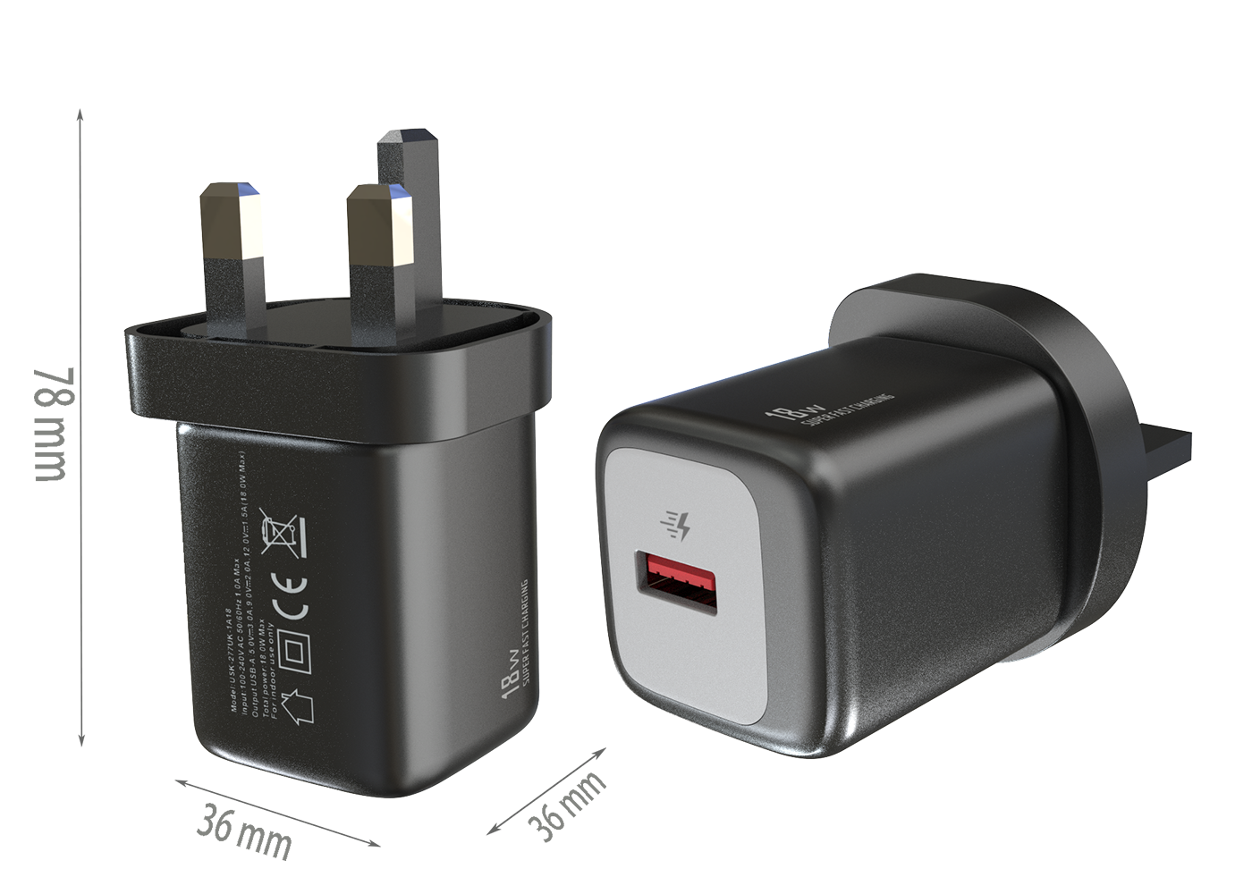 - EU PLUG Dimensions:82x36x36 mm - UK PLUG Dimensions:78x36x36 mm