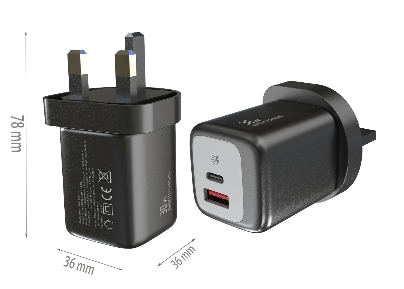 - UK PLUG Dimensions:78x36x36 mm