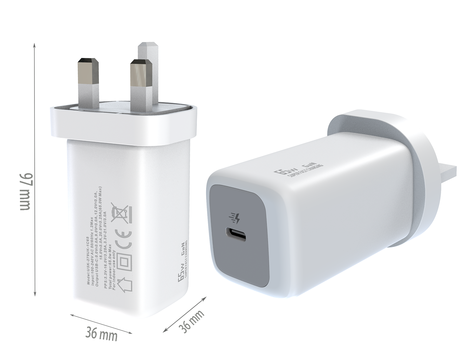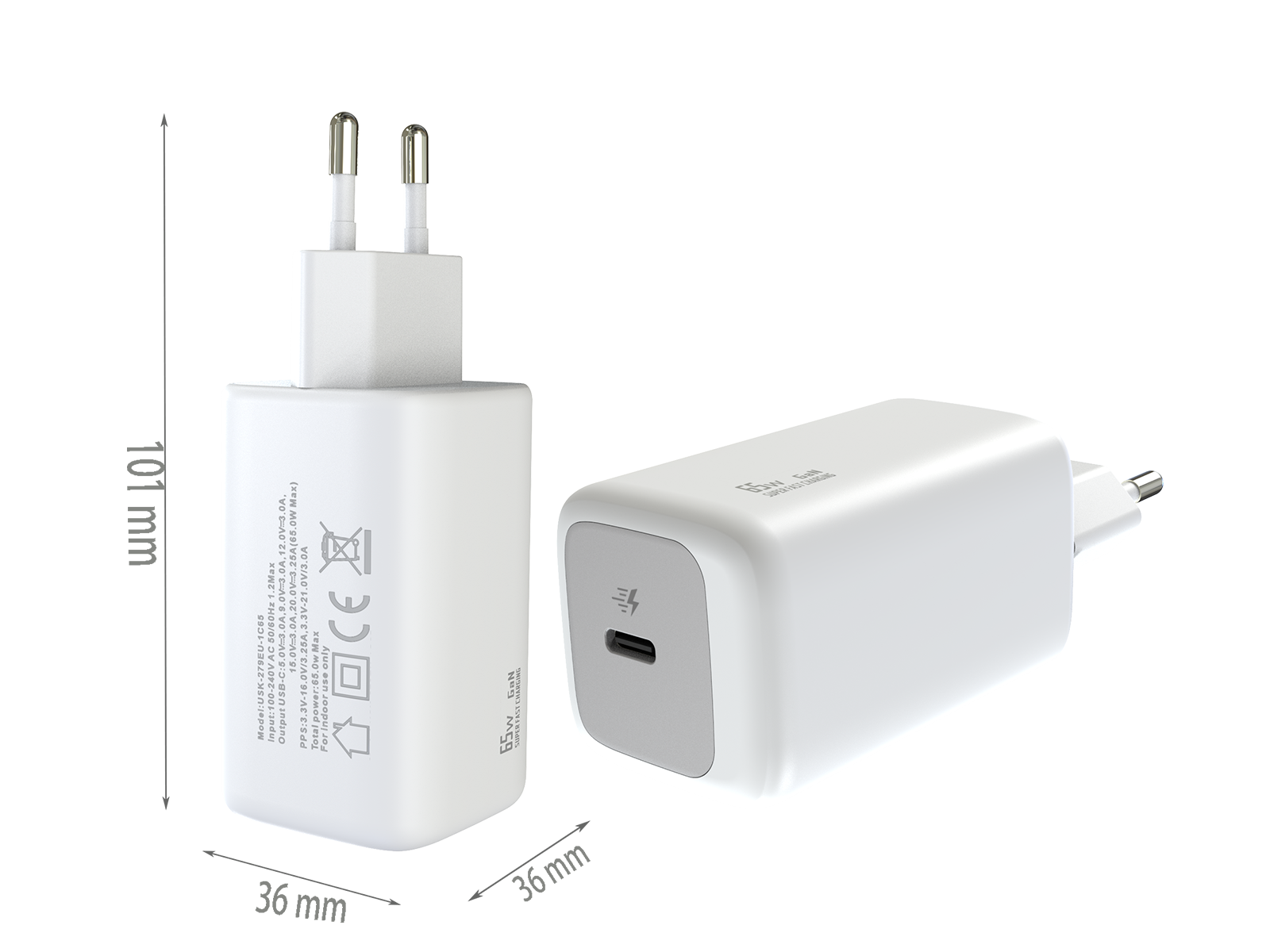 - Output:USB-CF:5V/3A,9V/3A,12V/3A,15V/3A,20V/3.25A, (max.65W)