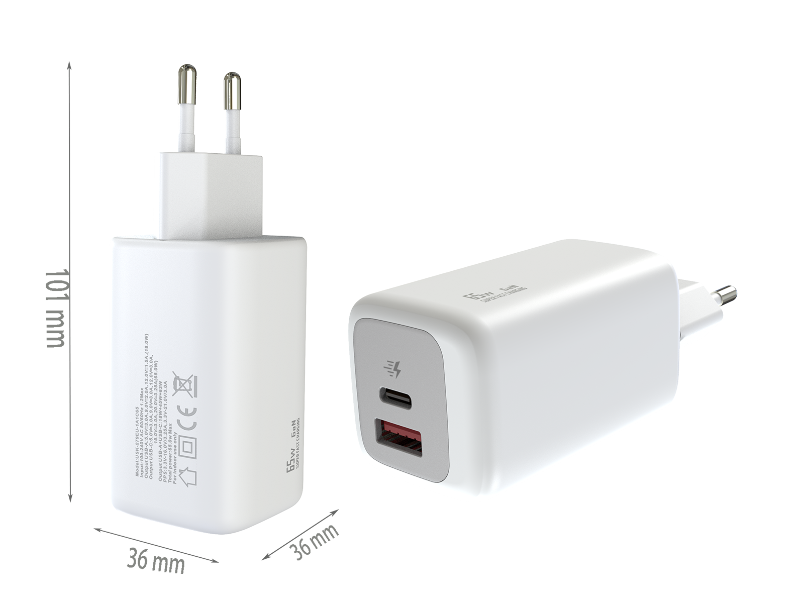 - EU PLUG Dimensions:101x36x36 mm
