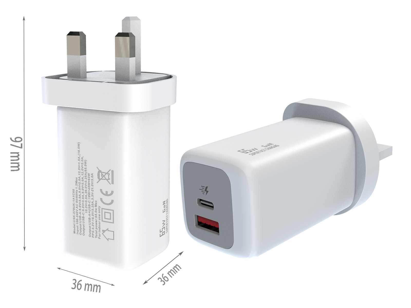- UK PLUG Dimensions:97x36x36 mm