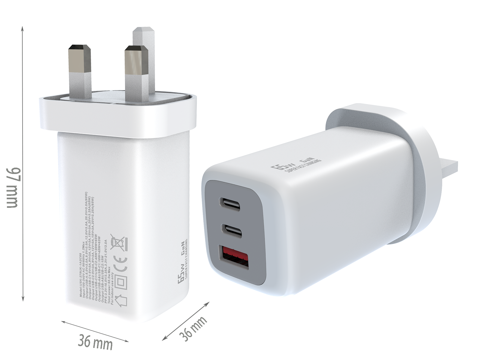 - UK PLUG Dimensions:97x36x36 mm