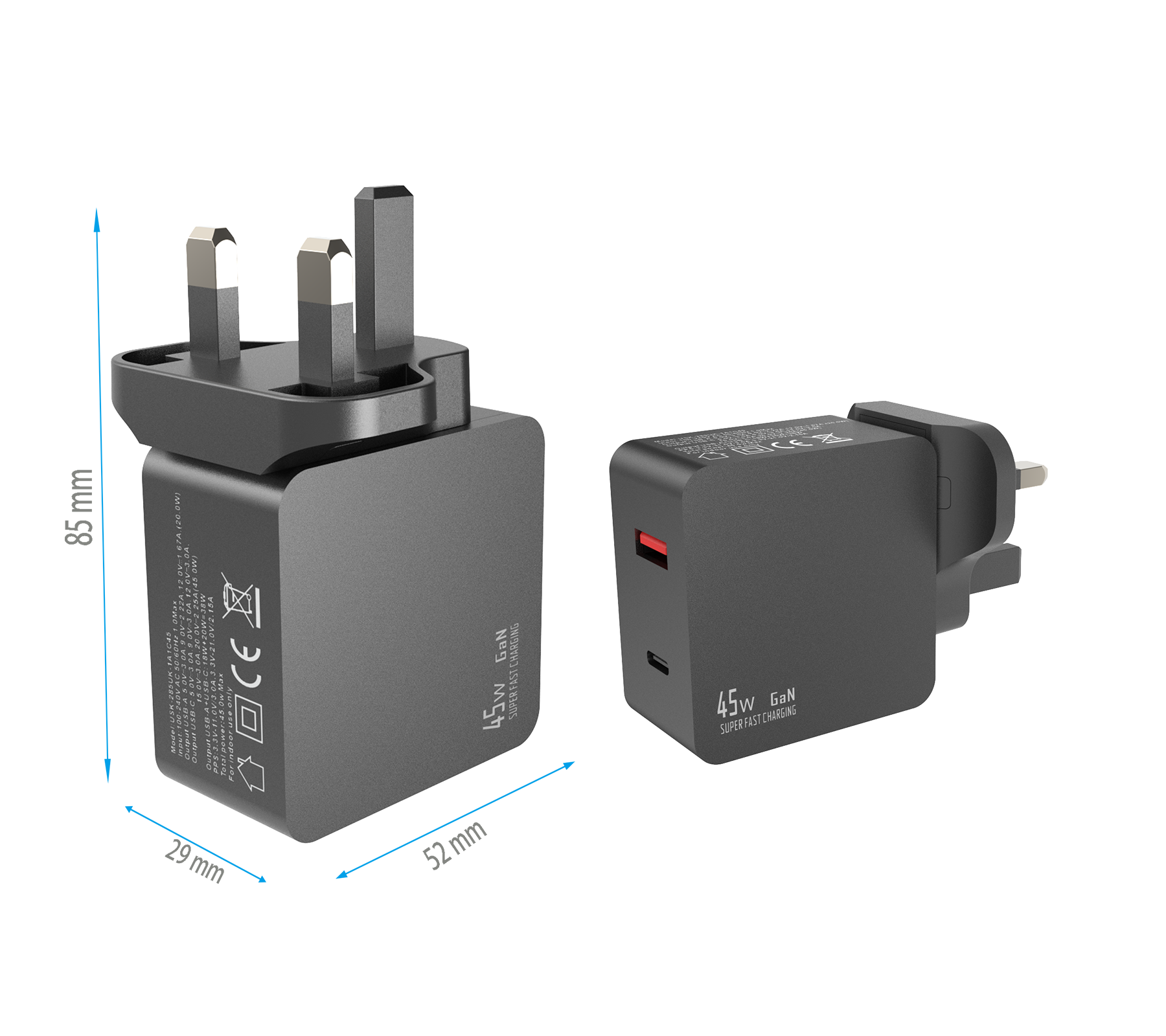 - UK PLUG Dimensions:85x52x29 mm