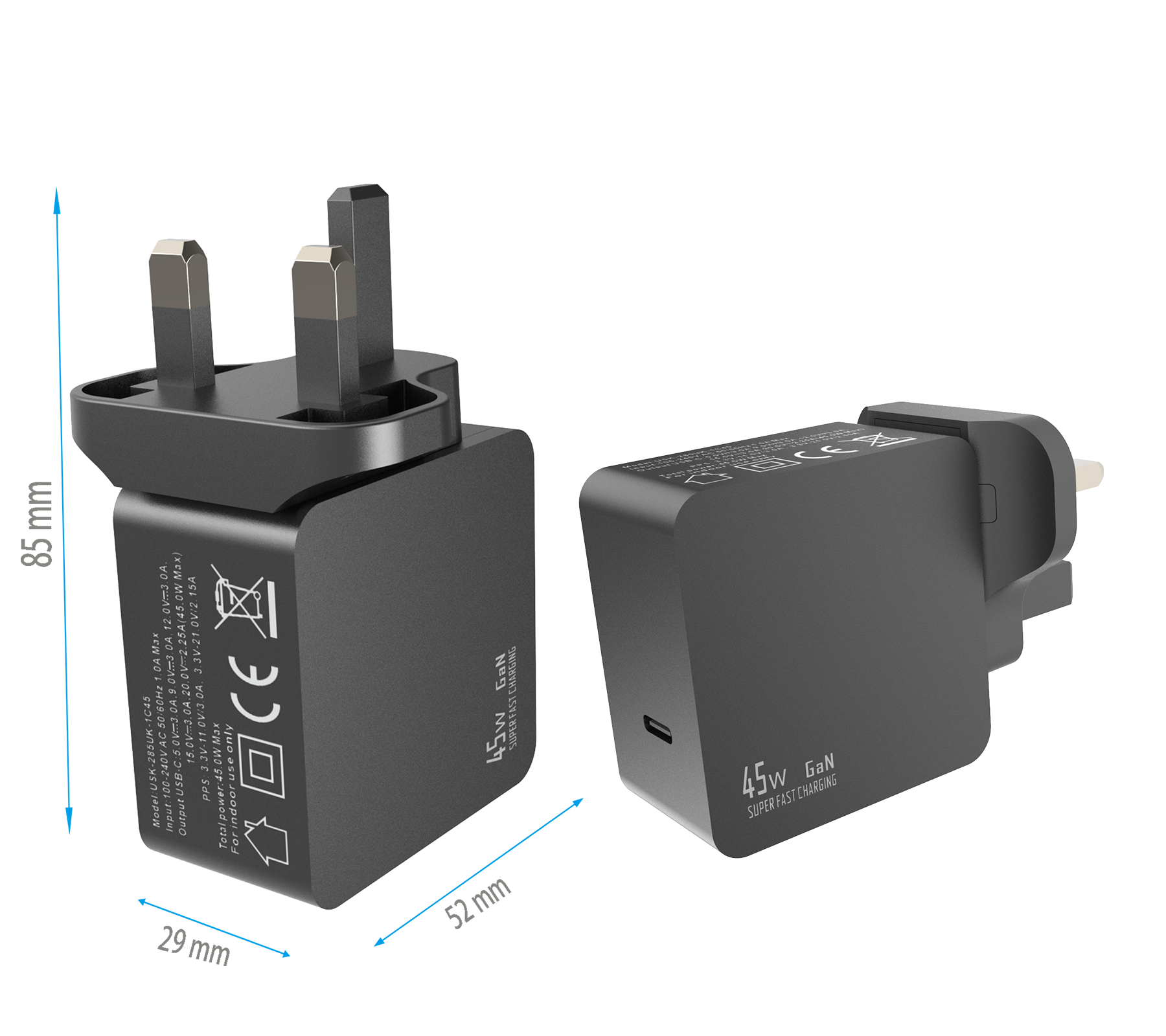 - Output:USB-CF:5V/3A,9V/3A,12V/3A,15V/3A,20V/2.25A, (max.45W)