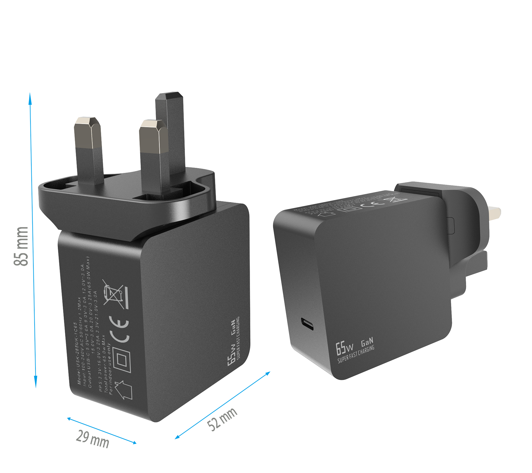 - Output:USB-CF:5V/3A,9V/3A,12V/3A,15V/3A,20V/3.25A, (max.65W)